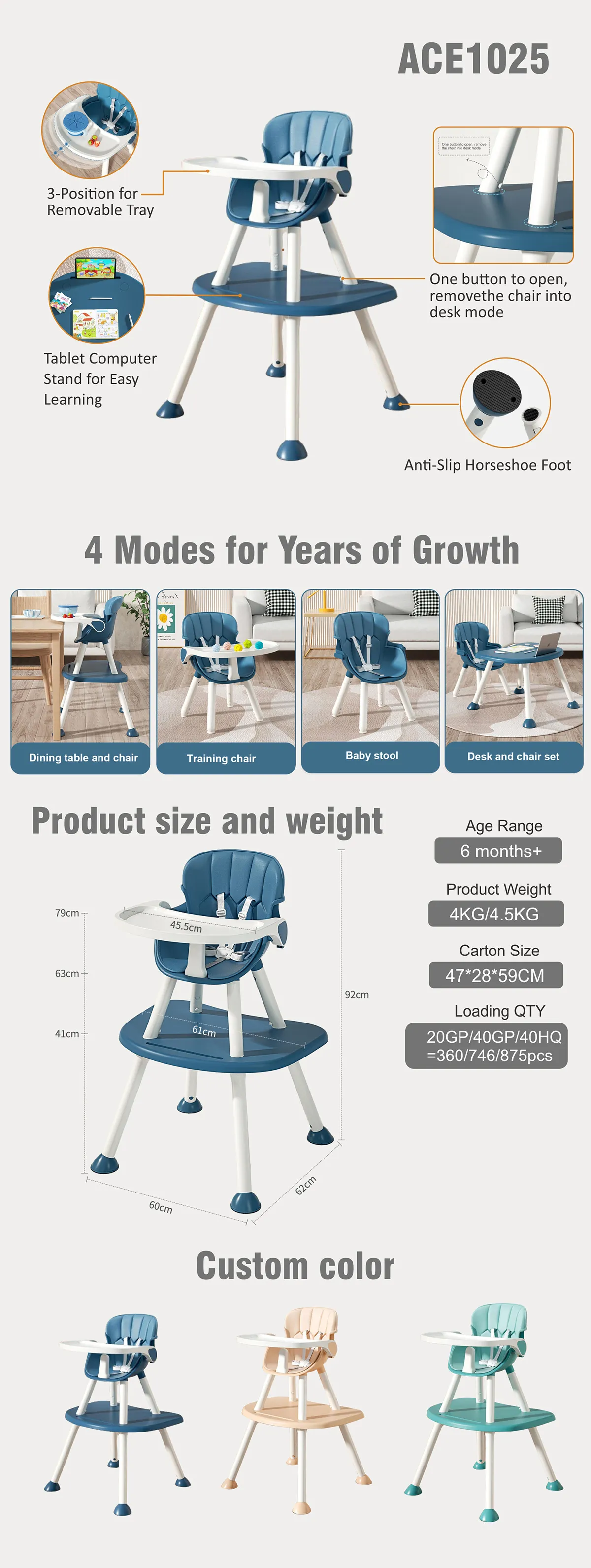 4 in 1: Study chair, Dining chair, Desk chair, Baby stool