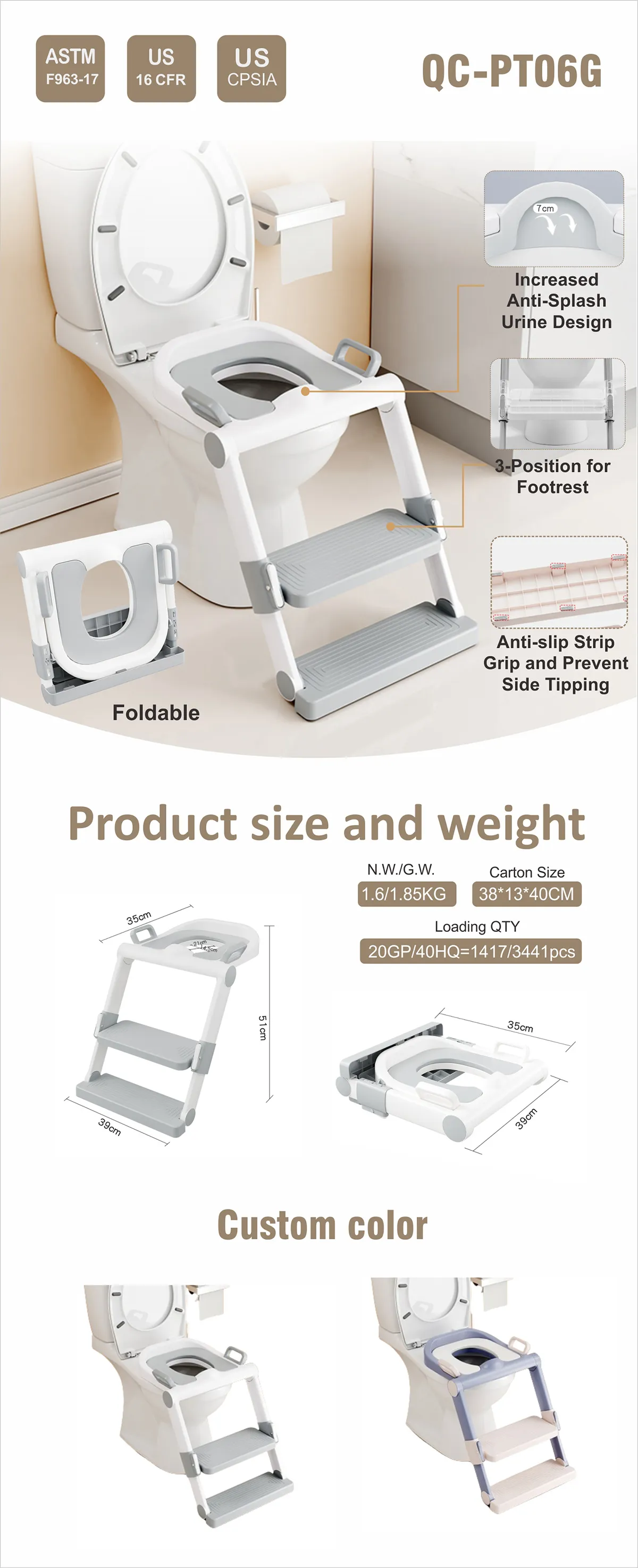 N.W./G.W.: 1.6 KG/1.85 KGProduct Size: 39*35*51CMCarton Size: 38*13*40CMLoading QTY: 20GP/40HQ=1417/3441 pcS